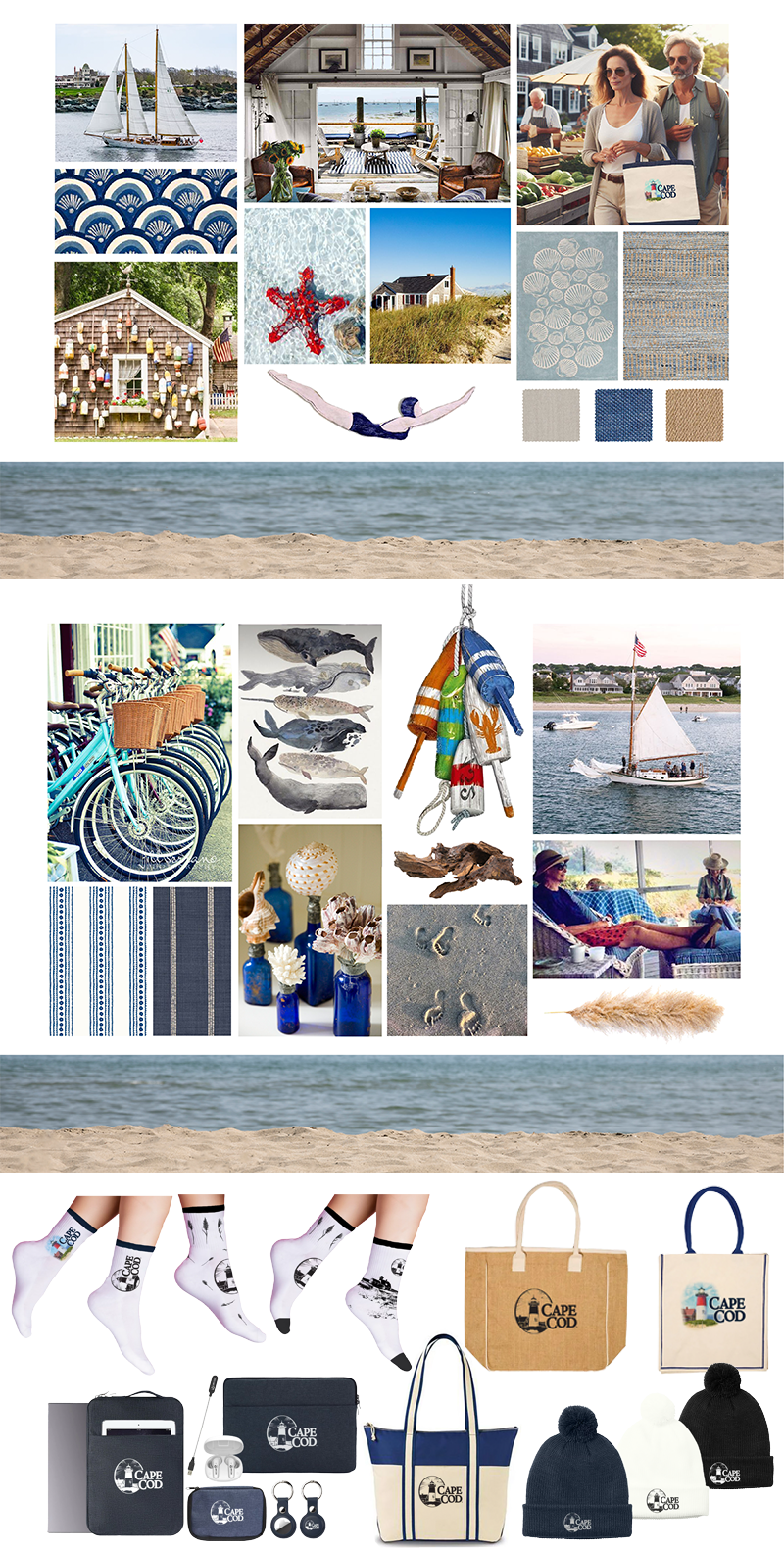 Mood boards and product mockups for Cape Cod vendor pitch